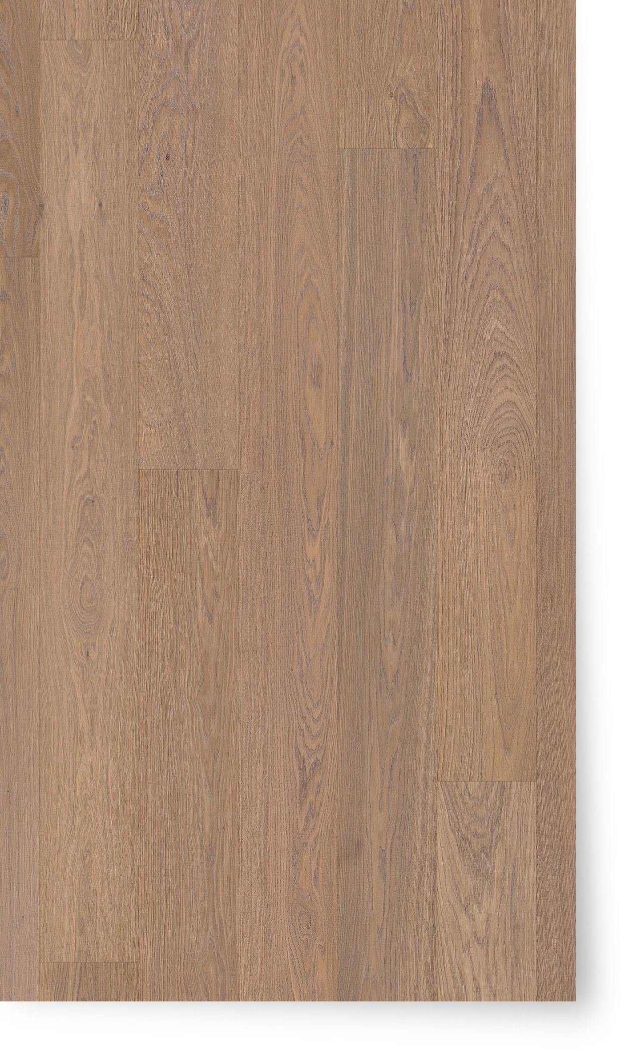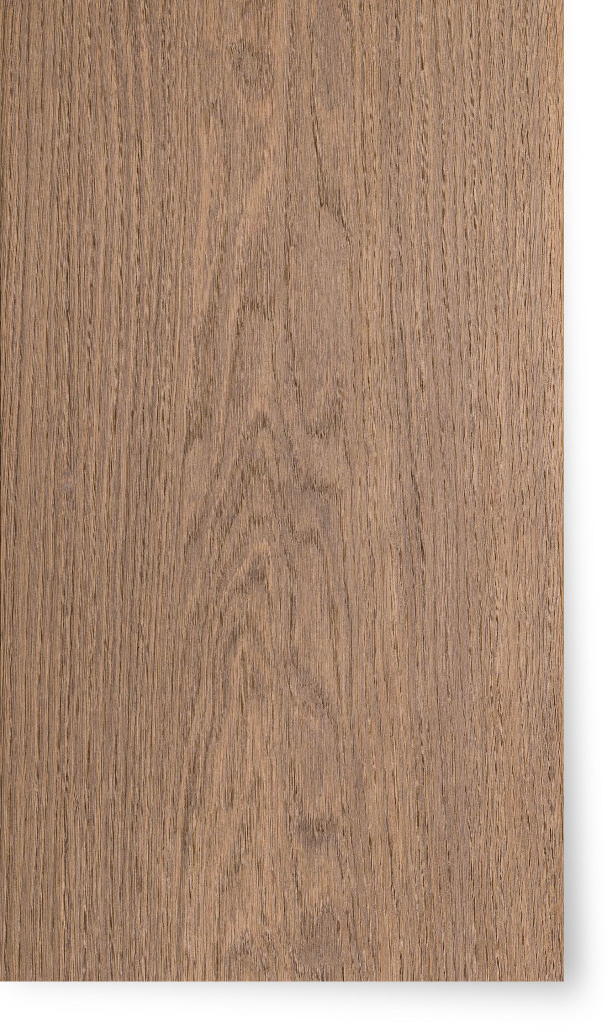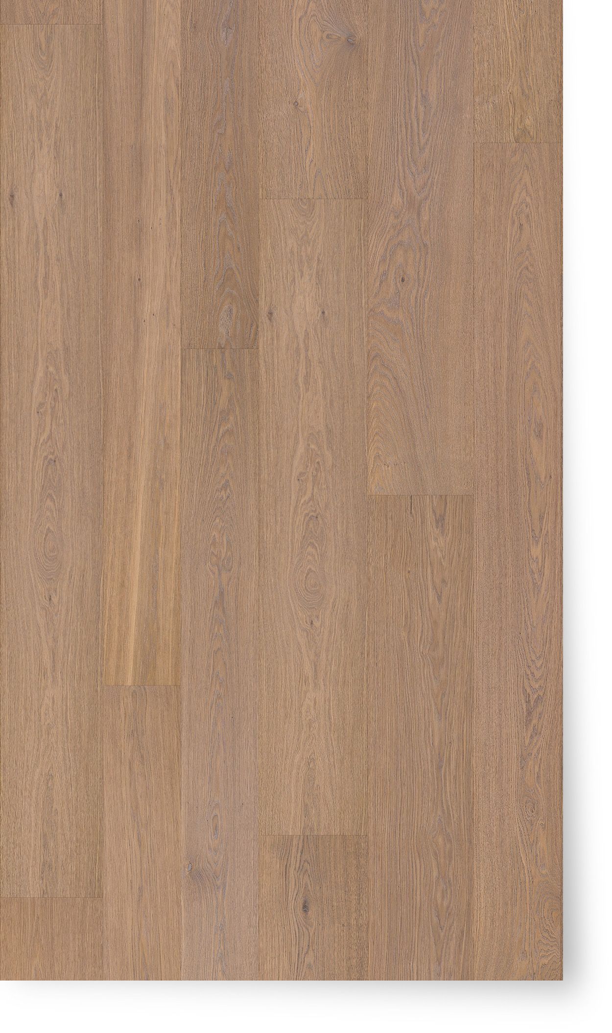 Pre-finished by hand, we give our Oak a warm olive-brown slightly "cerused" touch. Before applying hardwax, the Oak is deeply oil-stained in a subtle 2-tone to protect and keep its authentic look for longer. This finish works particularly well on uniform clear graded or rift and quarter cut planks in narrow planks and herringbone patterns in contemporaine homes with a classic touch.