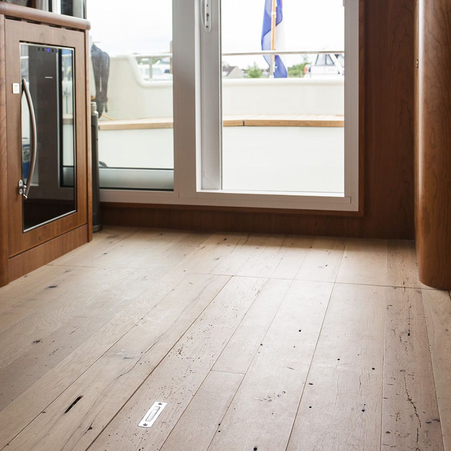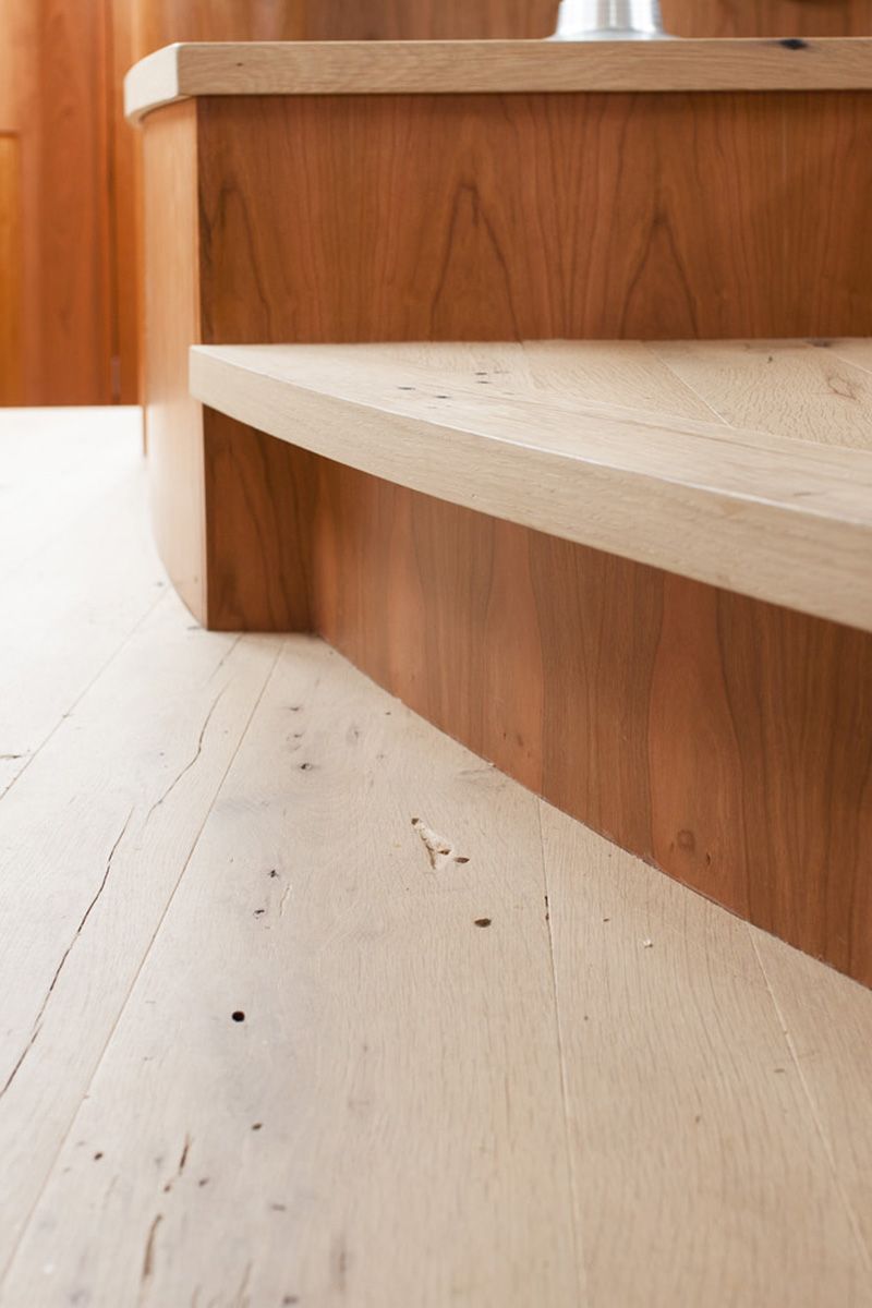 Floor:Antique American White Oak, finished in Faded Ultramatt Poly, with random narrow widths of 10–18 cm.