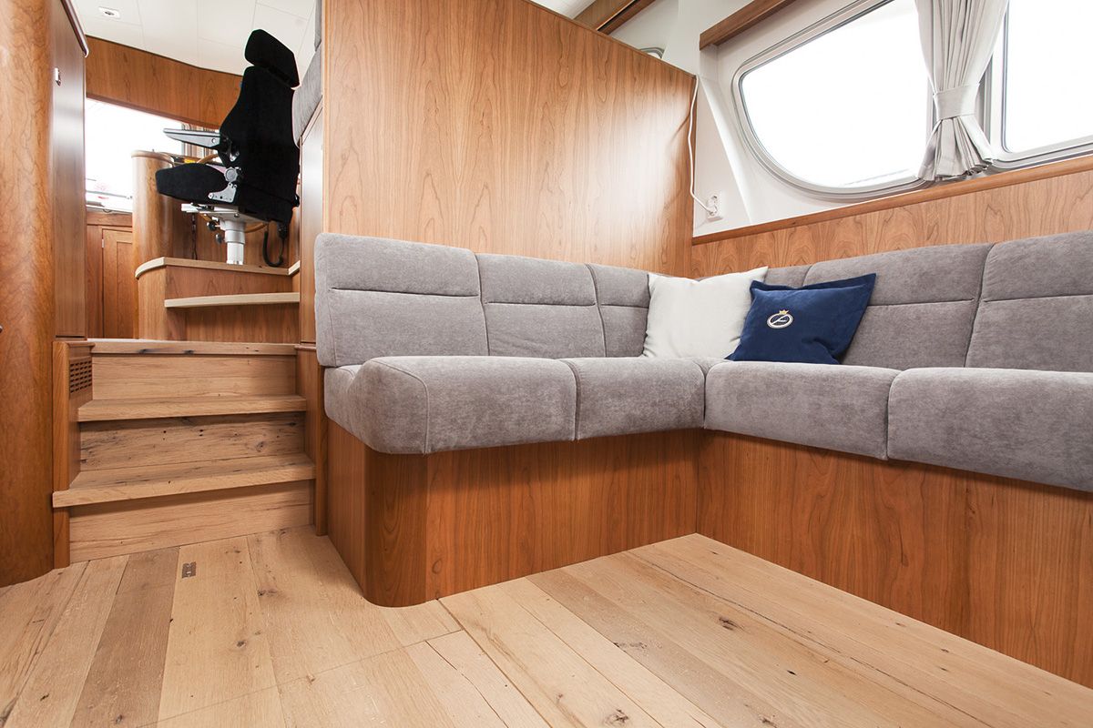 The result is a warm, inviting space that perfectly complements the yacht's elegant interior, enhancing the overall aesthetic with its rich, natural tones and flawless execution.