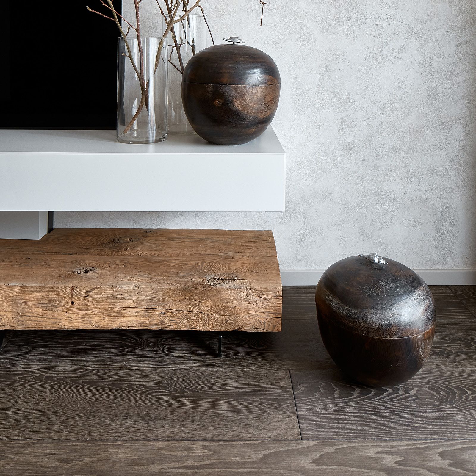 Our wide Continental Oak planks in a Select and Country mix grade, finished in Megeve Lava Hardwax, add warmth and depth throughout the space.