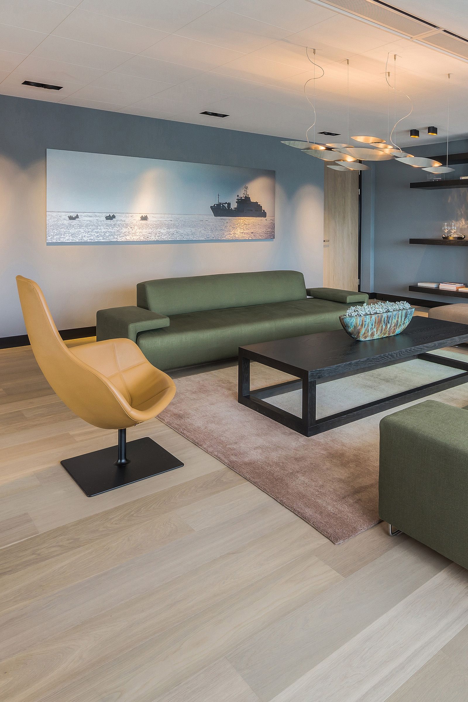 The Damen Shipyard Head Office in Gorinchem, The Netherlands, exudes a clean and sophisticated atmosphere, reflected in the choice of materials and finishes.